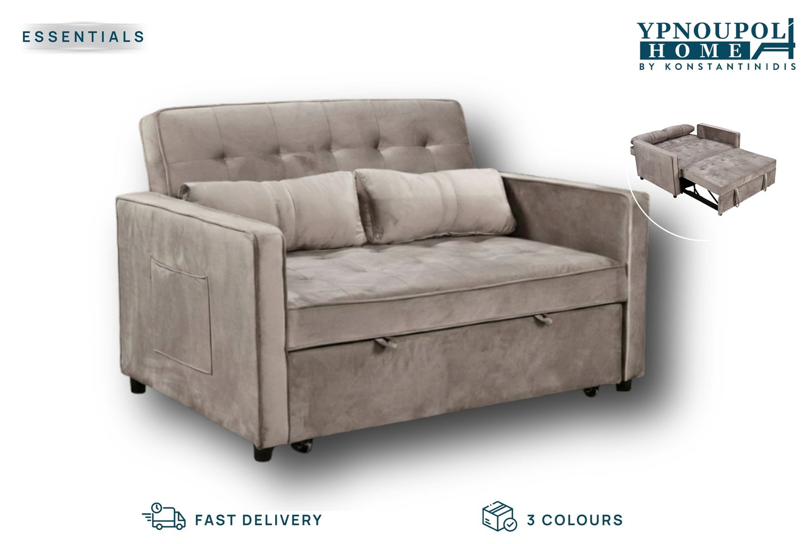 • Μετατροπή σε Κρεβάτι: Διαθέτει εύκολο μηχανισμό ανάπτυξης που δημιουργεί επιφάνεια ύπνου διαστάσεων 113 x 193 x 45 cm.