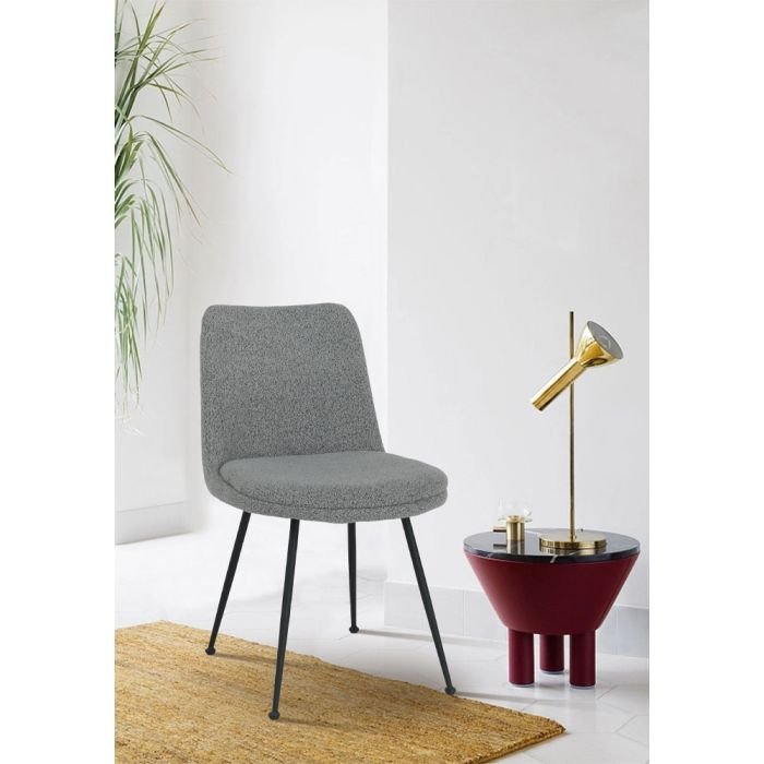 Η καρέκλα Alice αποτελεί έναν συνδυασμό διακριτικής πολυτέλειας και εξαιρετικής ποιότητας, προσφέροντας μια πινελιά κομψότητας σε κάθε περιβάλλον. Είναι επενδυμένη με μπουκλέ ύφασμα σε ανοιχτή γκρι απόχρωση, το οποίο προσφέρει απαλή υφή και μια ζεστή, φιλόξενη αίσθηση. Ο σχεδιασμός της την καθιστά ιδανική για τραπεζαρίες, καθιστικά ή επαγγελματικούς χώρους που απαιτούν διαχρονικό στυλ και προσεγμένη κατασκευή.