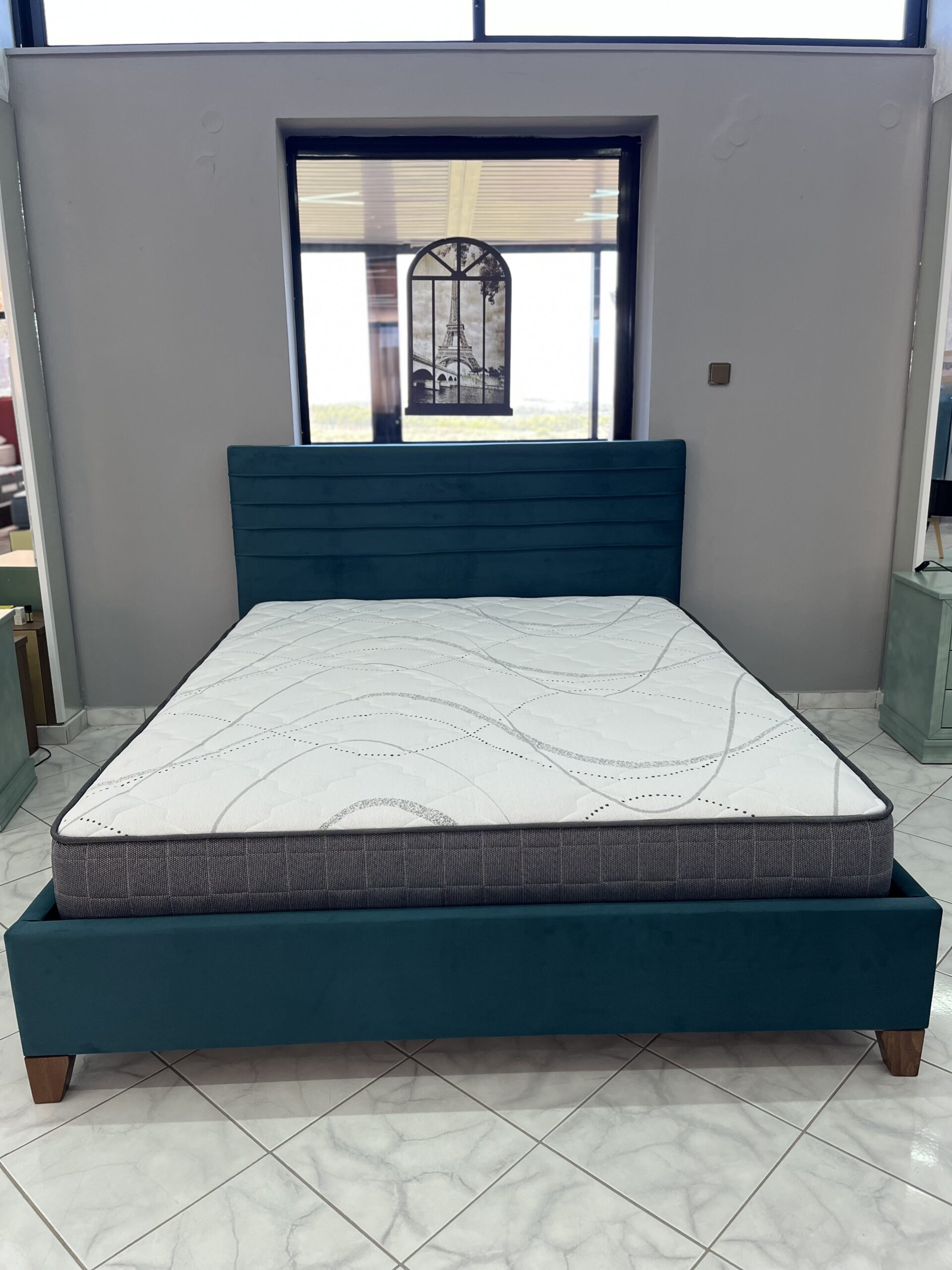 • Πόδια: Ξύλινα πόδια σε κωνικό σχήμα, τοποθετημένα σε ύψος που επιτρέπει τον εύκολο καθαρισμό του χώρου κάτω από το κρεβάτι.