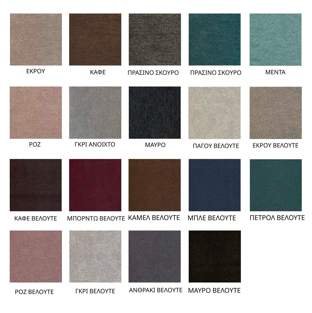 'Υφασμα ΚρεβάτιΑΝΘΡΑΚΙ ΒΕΛΟΥΤΕ, ΓΚΡΙ ΑΝΟΙΧΤΟ, ΓΚΡΙ ΒΕΛΟΥΤΕ, ΓΚΡΙ ΣΚΟΥΡΟ, ΕΚΡΟΥ, ΕΚΡΟΥ ΒΕΛΟΥΤΕ, ΚΑΜΕΛ ΒΕΛΟΥΤΕ, ΚΑΦΕ, ΚΑΦΕ ΒΕΛΟΥΤΕ, ΜΑΥΡΟ, ΜΑΥΡΟ ΒΕΛΟΥΤΕ, ΜΕΝΤΑ, ΜΠΛΕ ΒΕΛΟΥΤΕ, ΜΠΟΡΝΤΩ ΒΕΛΟΥΤΕ, ΠΑΓΟΥ ΒΕΛΟΥΤΕ, ΠΕΤΡΟΛ ΒΕΛΟΥΤΕ, ΠΡΑΣΙΝΟ ΣΚΟΥΡΟ, ΡΟΖ, ΡΟΖ ΒΕΛΟΥΤΕ