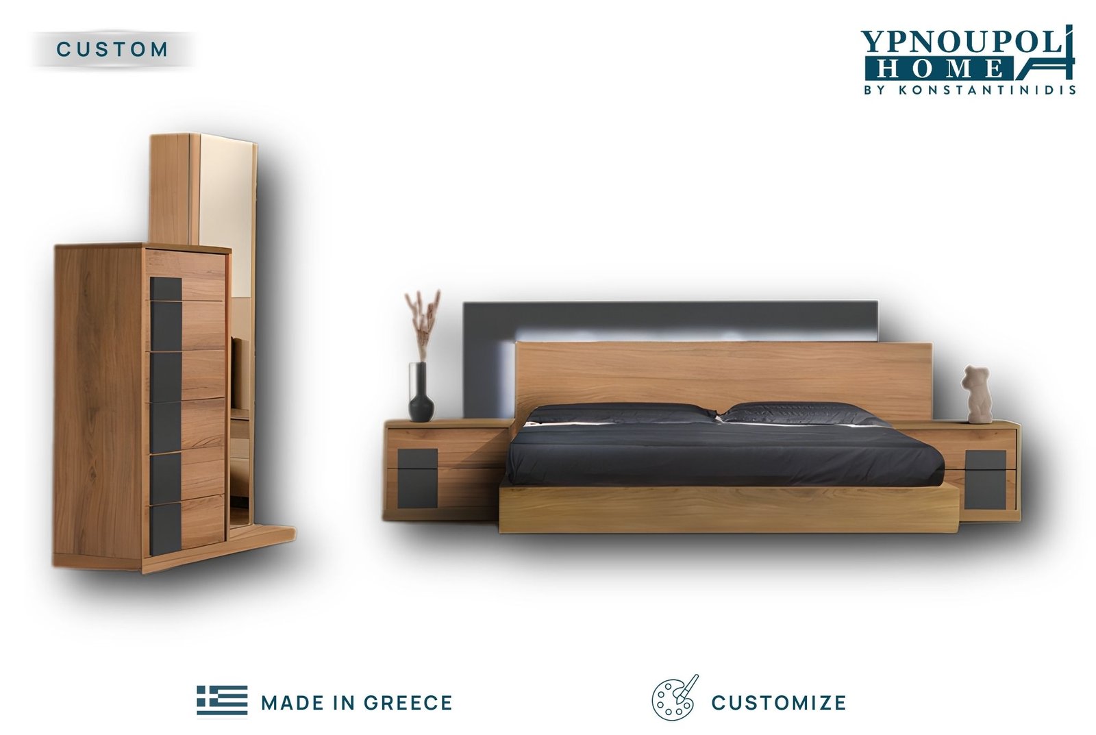 • Περιεχόμενα Σετ: Η σύνθεση περιλαμβάνει κρεβάτι, δύο κομοδίνα, συρταριέρα και καθρέπτη.