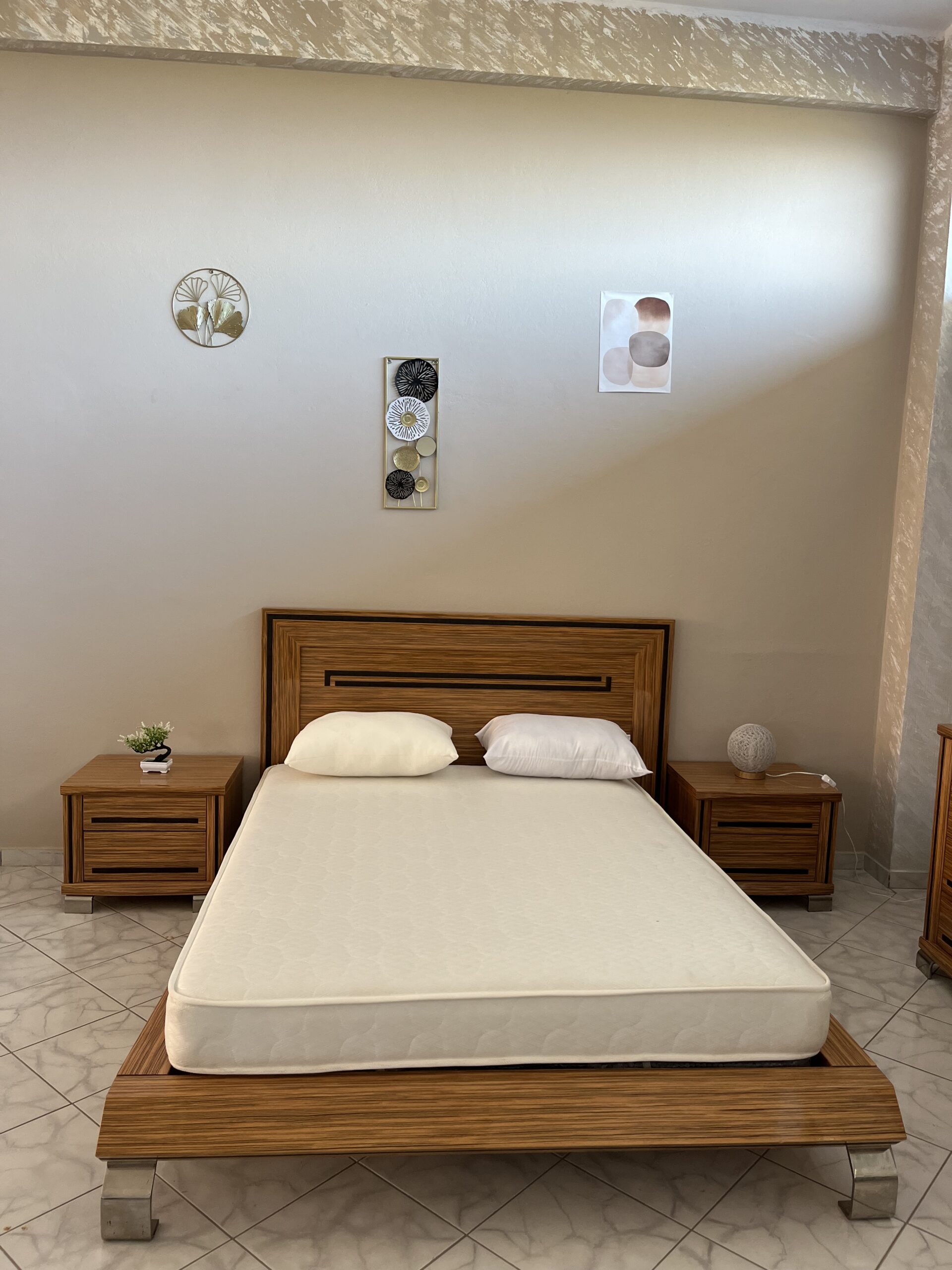1. Κρεβάτι: Σχεδιασμένο για στρώμα διάστασης 160 x 200 cm, με ενισχυμένο σκελετό.