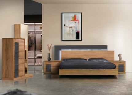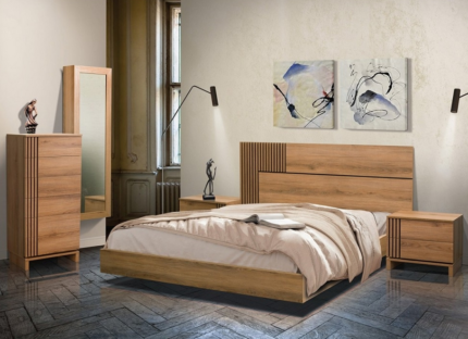 • Σχεδιασμός: Minimal γραμμές που αναδεικνύουν το φυσικό μοτίβο του ξύλου, δημιουργώντας ένα οπτικά στιβαρό σύνολο.