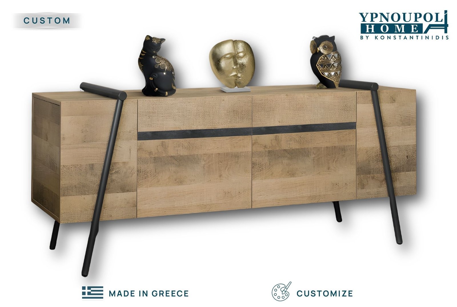 Ο μπουφές Japandi αποτελεί ένα statement έπιπλο που συνδυάζει μοναδικά την industrial αισθητική με τη σύγχρονη λειτουργικότητα. Οι ιδιαίτερες κατασκευαστικές του λεπτομέρειες και τα μεταλλικά στοιχεία αναδεικνύουν έναν δυναμικό χαρακτήρα, δημιουργώντας μια επιβλητική παρουσία που ξεχωρίζει σε κάθε χώρο. Σχεδιασμένος για να προσφέρει λύσεις οργάνωσης υψηλών προδιαγραφών, διαθέτει ευρύχωρα ντουλάπια και συρτάρια σε μια πρακτική διάταξη που εξυπηρετεί απόλυτα τις ανάγκες ενός σύγχρονου σαλονιού ή μιας τραπεζαρίας. Ελληνικής κατασκευής, ο μπουφές Japandi εγγυάται στιβαρότητα και διαχρονική αντοχή, αποτελώντας την ιδανική επιλογή για όσους αναζητούν την τέλεια ισορροπία ανάμεσα στο στυλ και την καθημερινή χρηστικότητα.