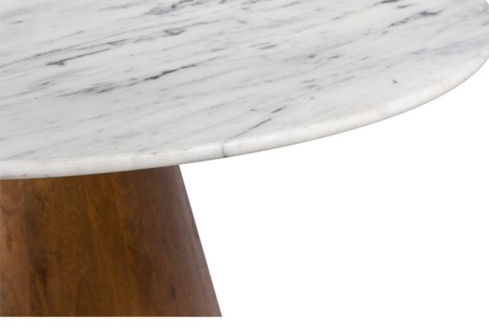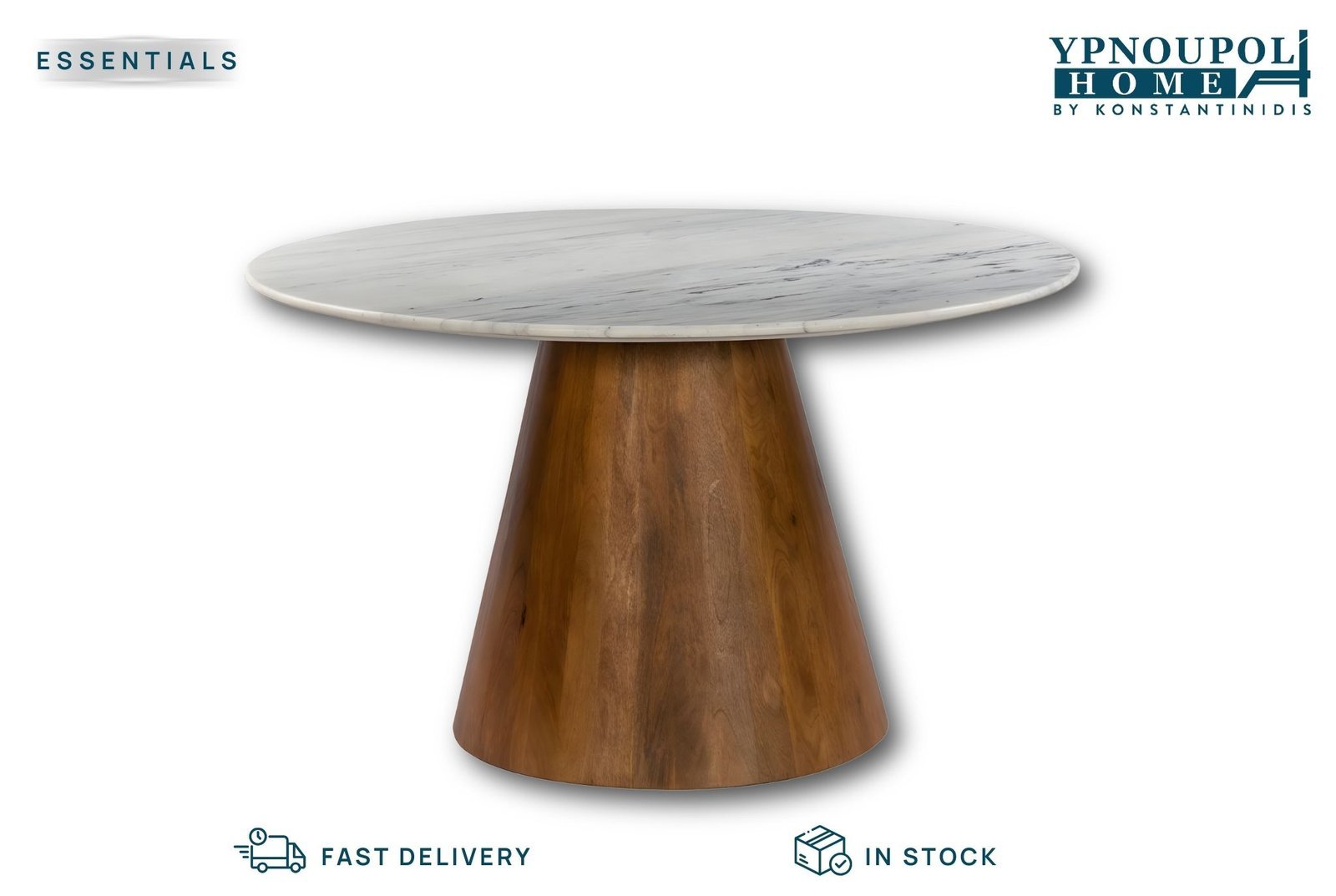 Η απόλυτη ισορροπία υλικών και αισθητικής. Το τραπέζι Awen είναι σχεδιασμένο για όσους αναζητούν την ποιότητα. Η στρογγυλή του επιφάνεια από λευκό μάρμαρο προσφέρει αντοχή και απαράμιλλη ομορφιά, ενώ η στιβαρή βάση από ξύλο mango σε καρυδί απόχρωση εξασφαλίζει απόλυτη σταθερότητα. Μια ιδανική επιλογή για σύγχρονες τραπεζαρίες που θέλουν να ξεχωρίζουν.