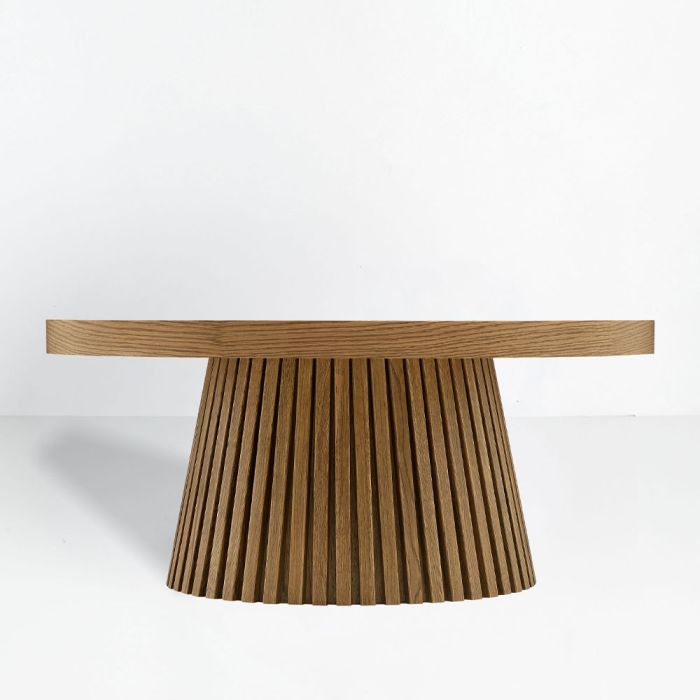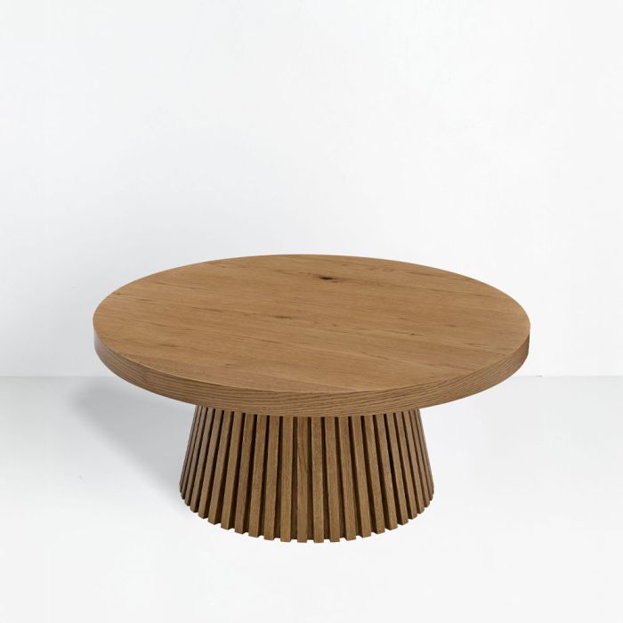 Το τραπεζάκι σαλονιού Artemida (90×90 cm) αποτελεί μια ωδή στην οργανική κομψότητα, αναδεικνύοντας την ακατέργαστη ομορφιά του φυσικού δρυ. Με επιφάνεια Veneer Oak πάχους 50 mm και στιβαρό σκελετό από Plywood, εξασφαλίζει επιστημονικά μελετημένη δομική σταθερότητα και αντοχή στον χρόνο. Ο στρογγυλός, μινιμαλιστικός σχεδιασμός του και η φυσική του απόχρωση προσδίδουν μια αίσθηση ζεστασιάς και αρχιτεκτονικής καθαρότητας, καθιστώντας το ιδανικό κεντρικό κομμάτι για κάθε σύγχρονο εσωτερικό χώρο.