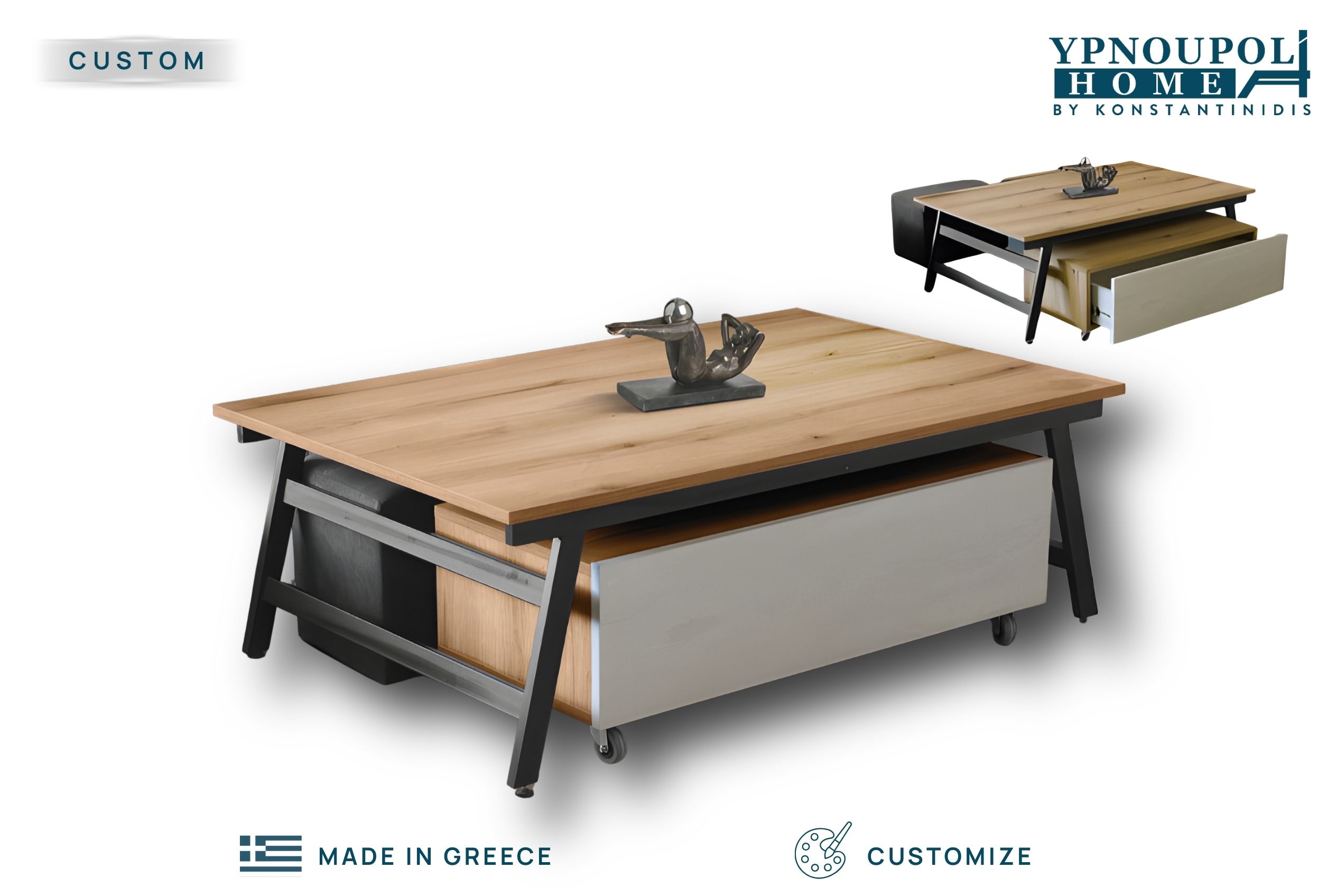 Σχεδιασμός: Modern Multi-functional με ενσωματωμένο συρτάρι και βοηθητικά σκαμπό.