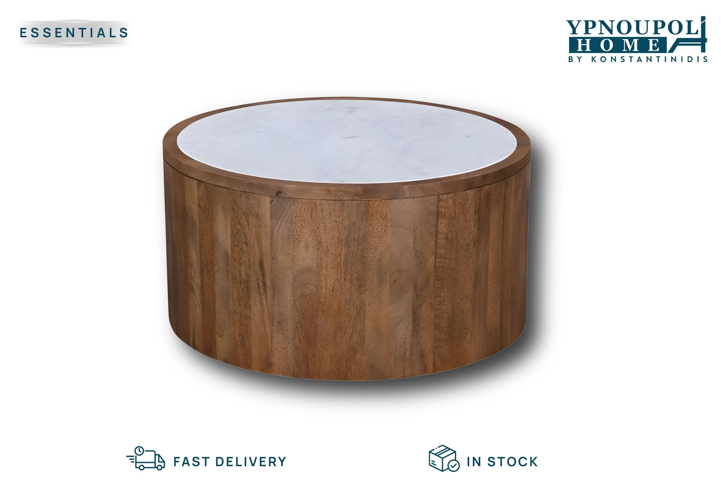 Υλικά: Επιφάνεια από φυσικό Λευκό Μάρμαρο και στιβαρή βάση από ξύλο Mango υψηλής πυκνότητας.